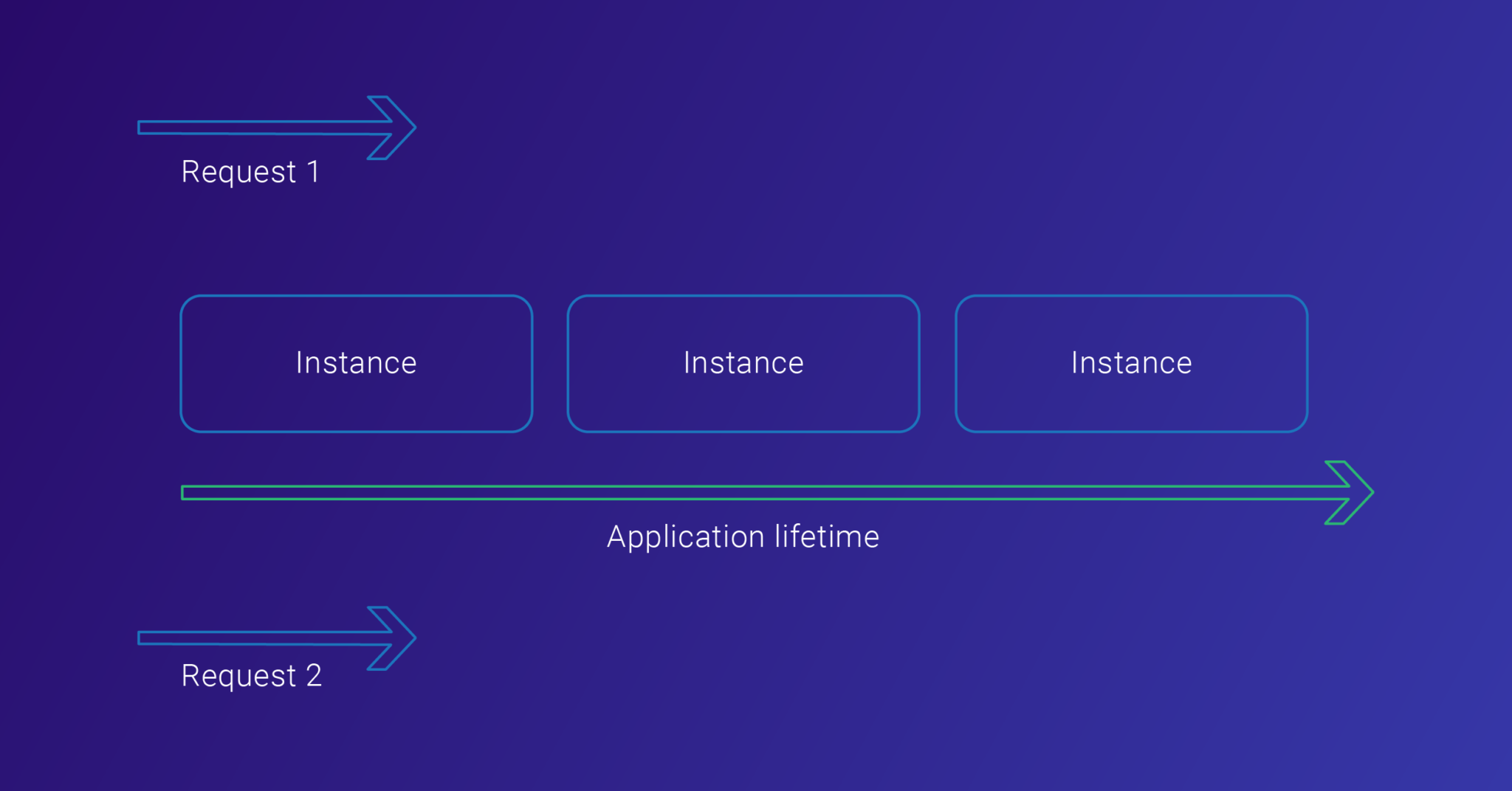 A single instance of the registered service class is created and stored in the memory. It is re-used across the application when multiple requests come into the application. Thus, we can use the singleton lifetime for services that are expensive to instantiate.