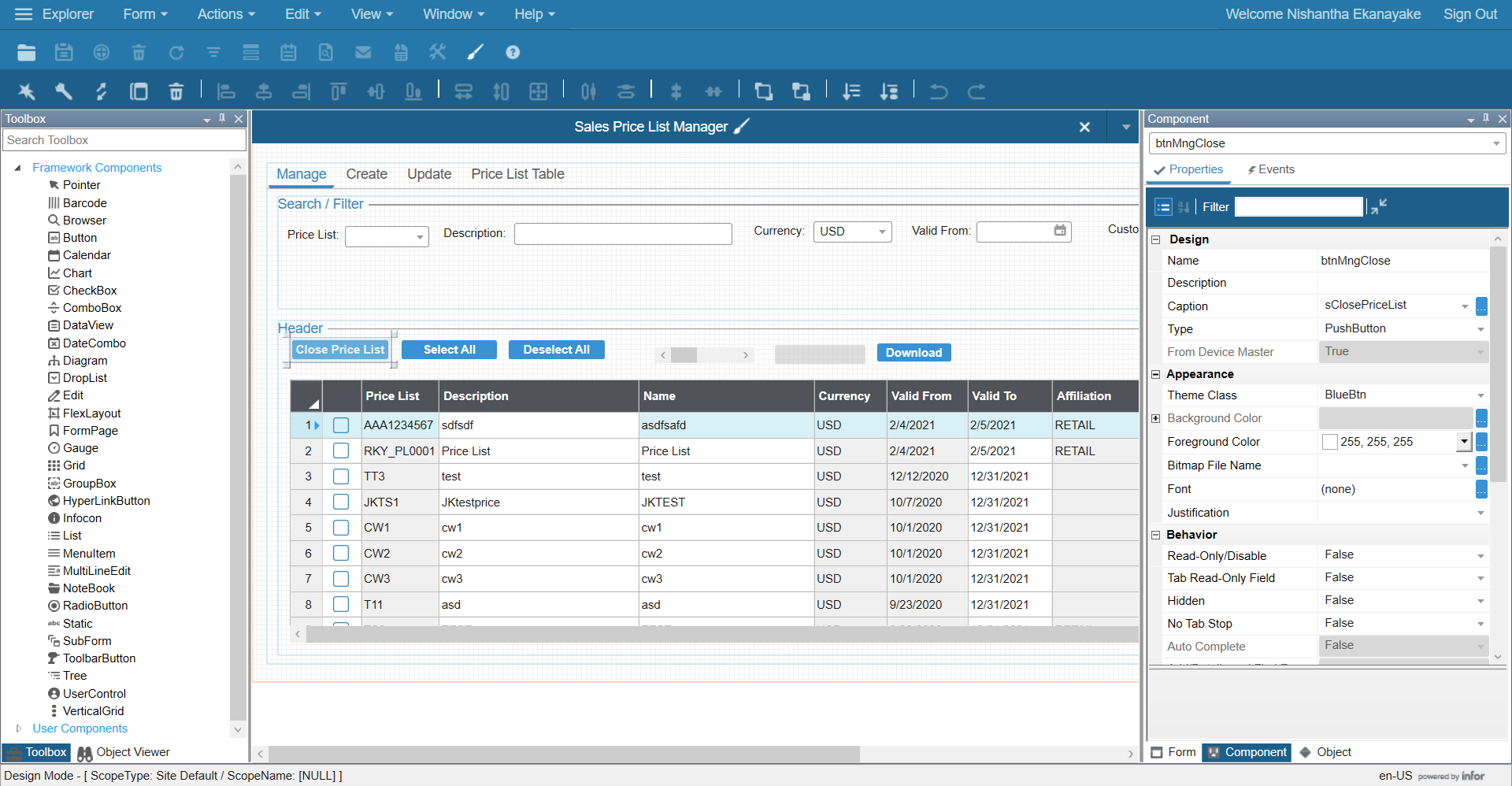 Infor Mongoose’s no-code, low-code rapid application development framework, helps keep up with today’s agile and adaptable business requirements. It extends your application development experience to a greater extent by using Form scripts, Global scripts and IDO extension classes, enabling you to develop rich applications that include complex logic. Furthermore, in Form scripts, Global scripts and IDO extension classes, you can use C#.net as your development language. This means you can use most of the features available with C#.