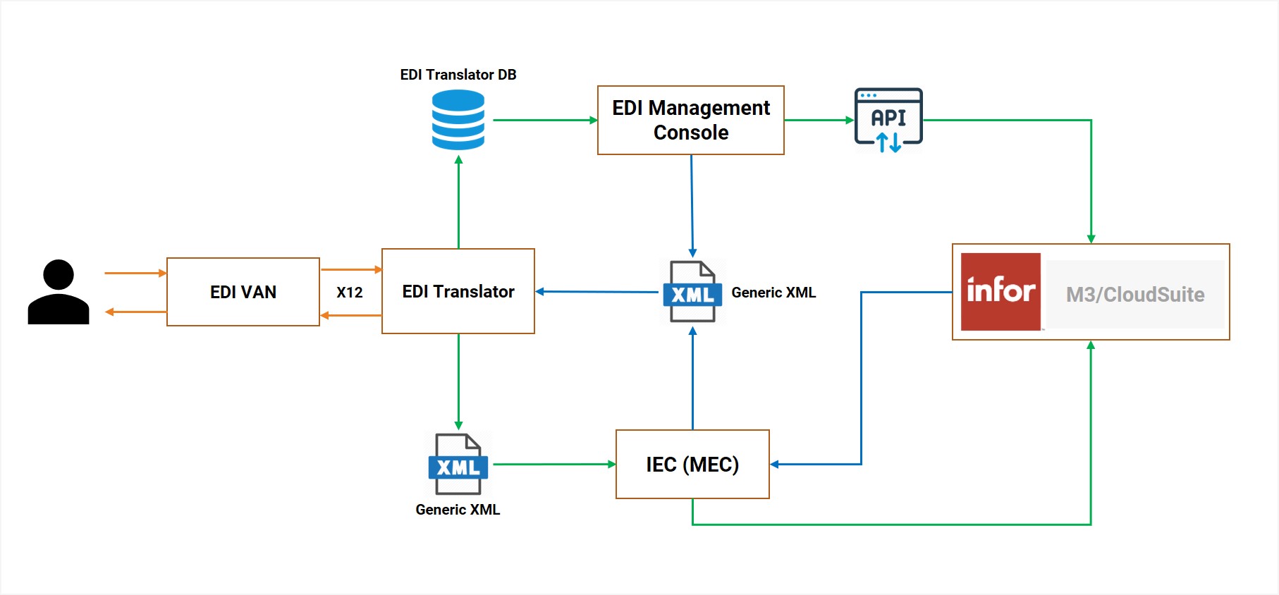 The EDI management console is one of the key components of the Fortude EDI Framework. It provides different user interfaces to manage, hold, review, revise, and consolidate EDI transactions before posting them to M3.