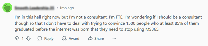 Multiple Reddit users vent their frustrations about executive teams that treat digital transformation like a tech shopping spree, purchasing Workday, Salesforce, or Microsoft Copilot, without a cohesive plan.